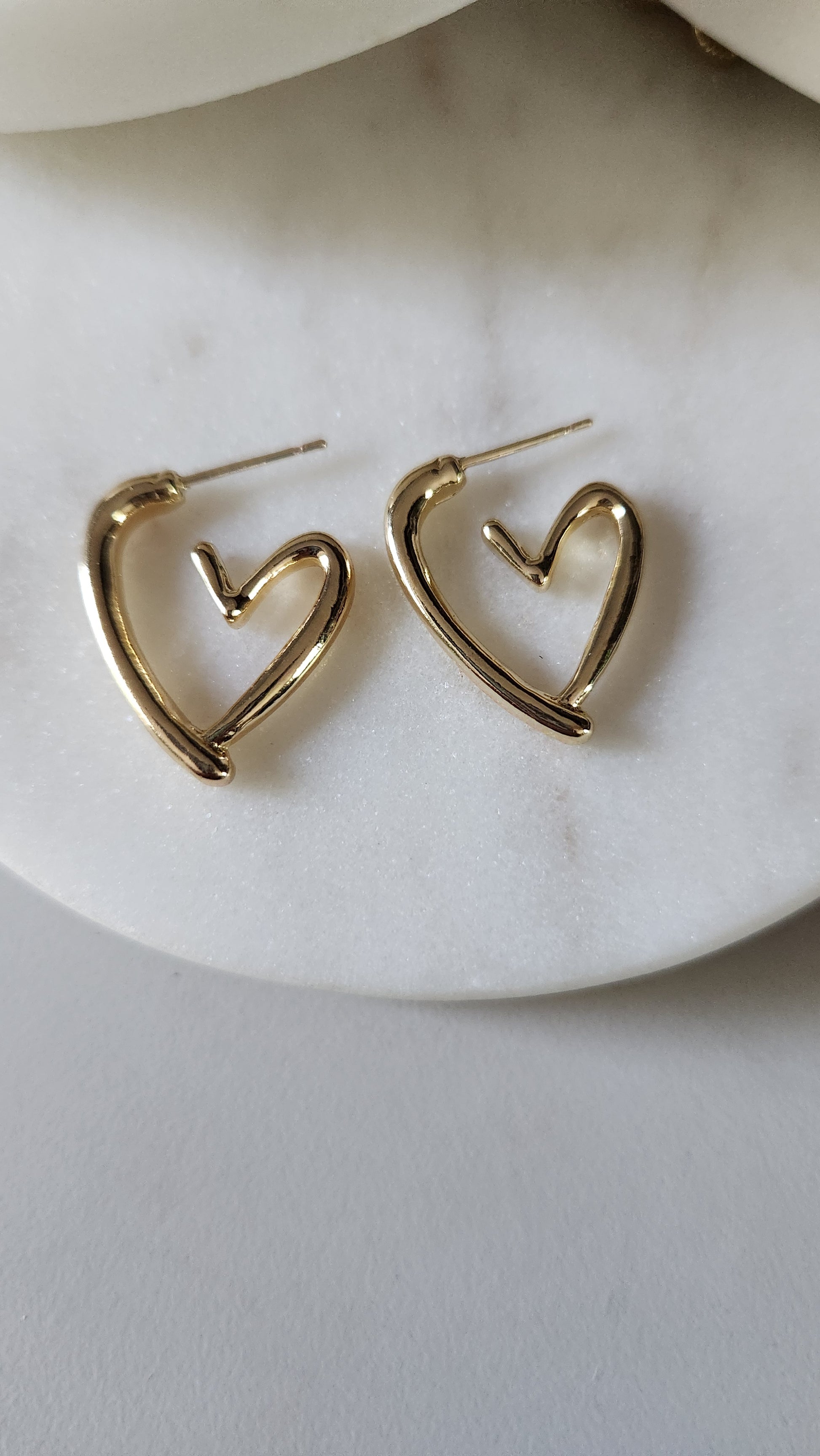 These Amerie Earrings will add some heart and soul to your jewelry collection. Made from gold plated stainless steel, these small heart shaped hoops are both stylish and durable. Perfect for daily wear or a night out!