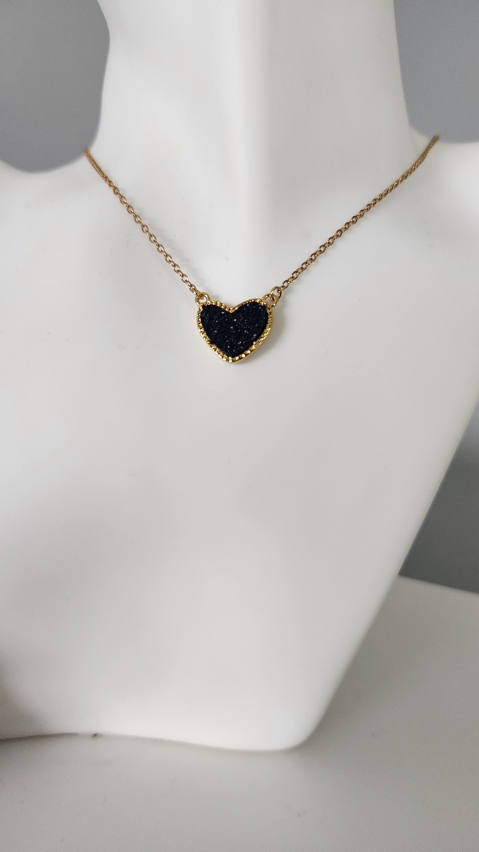 Get ready to wear your heart on your neck! This Black Heart Necklace features a dazzling druzy pendant that sparkles like your personality (when you’ve had enough coffee). Set on a gold-plated chain, it’s perfect for adding a dash of sass to any outfit. Love at first bling!