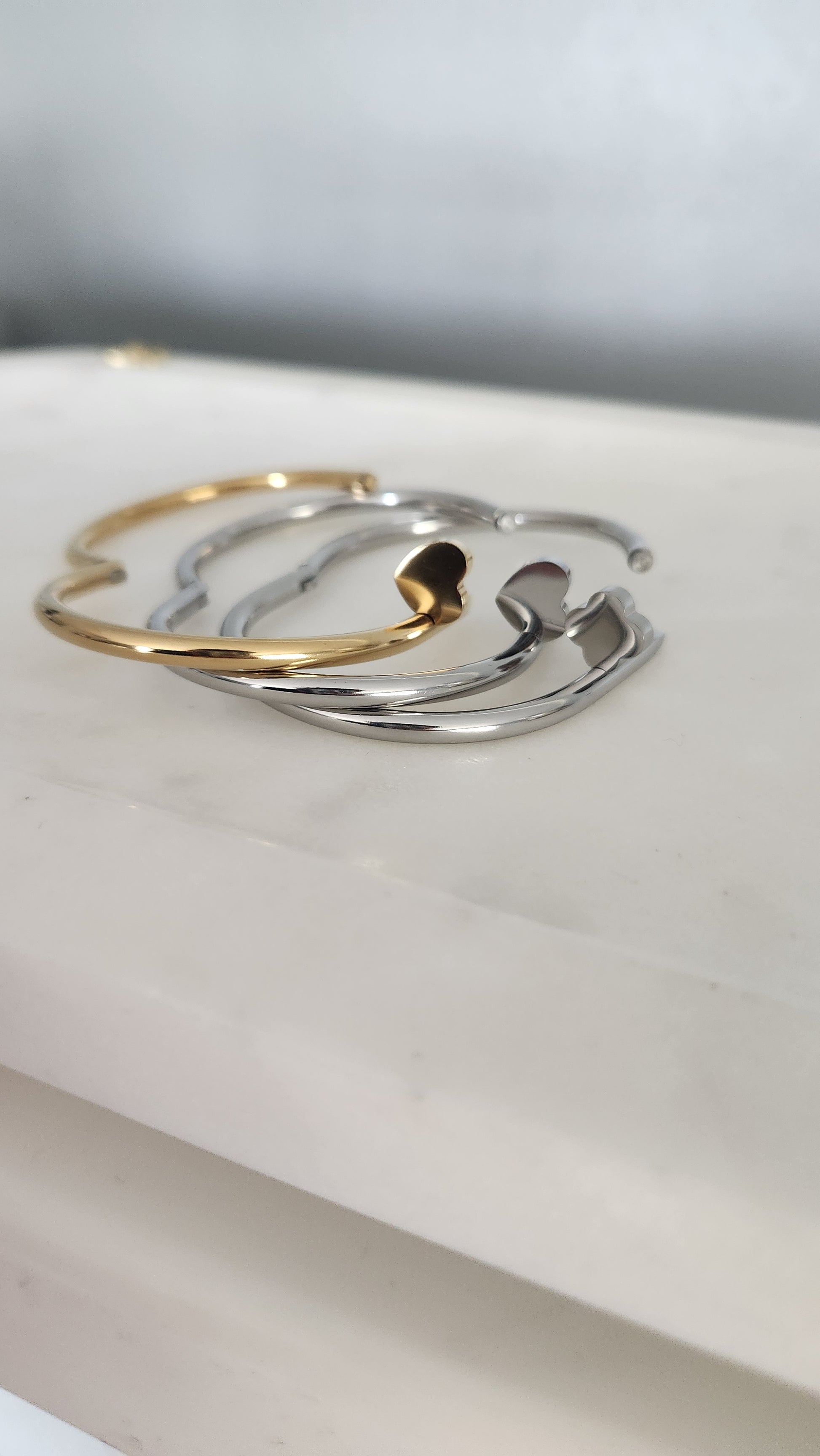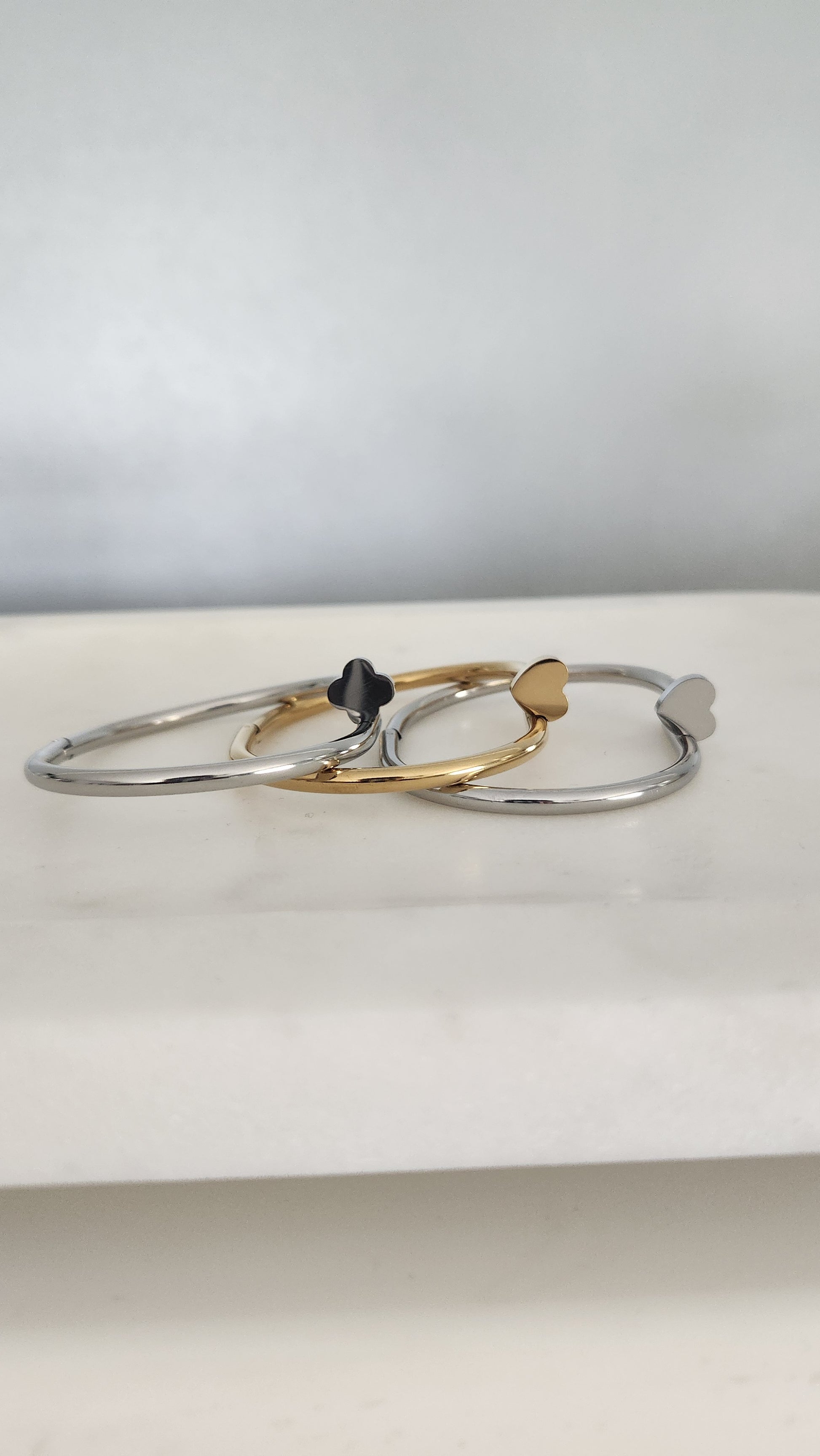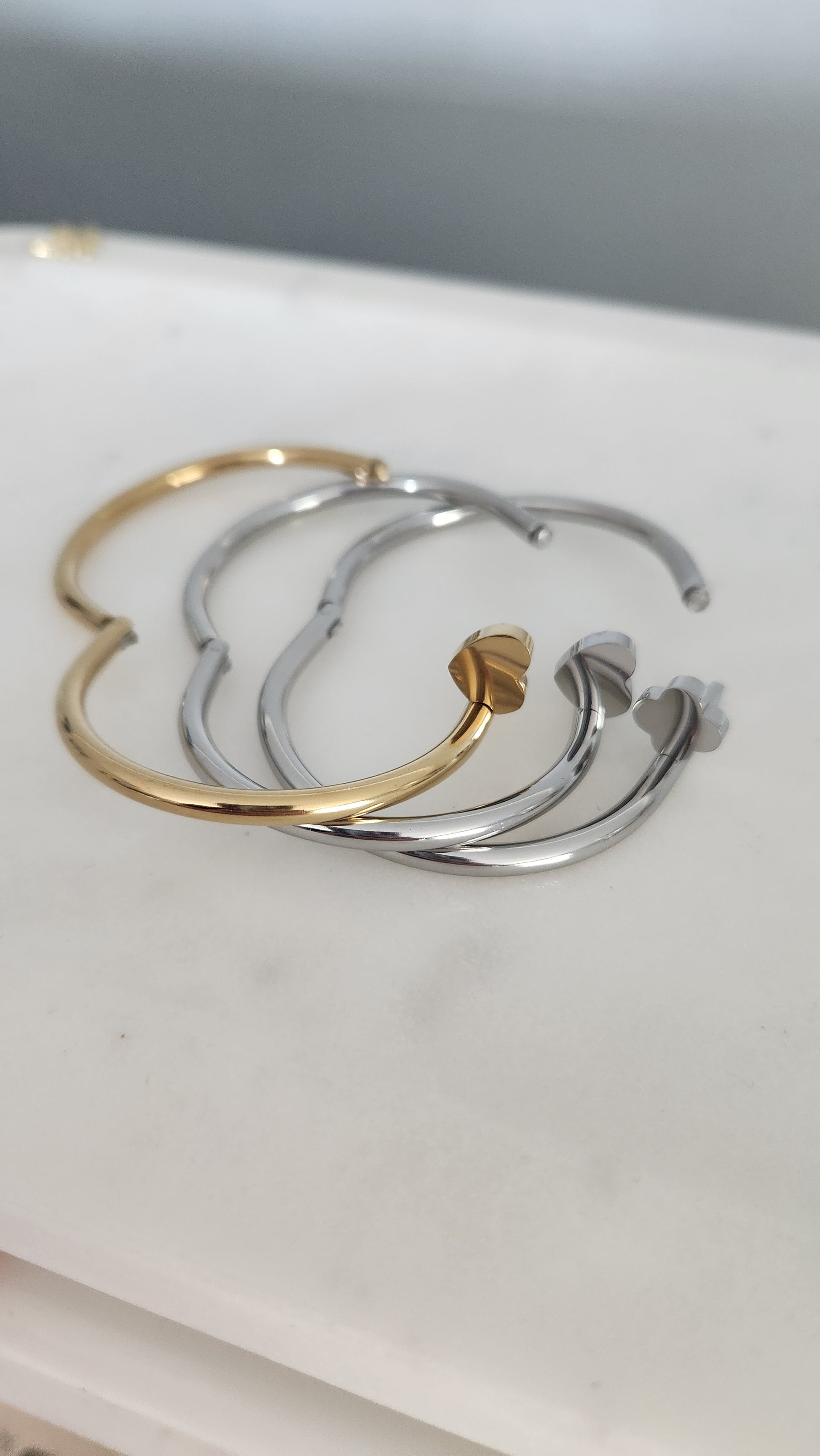 Meet the Clavo Bangle, where nail art meets wrist bling! This playful piece features a quirky nail design and a handy snap closure. Available in stainless steel or gold-plated, it’s the perfect choice for those who love a little heart or clover detail. Wear it and let your style do the talking!