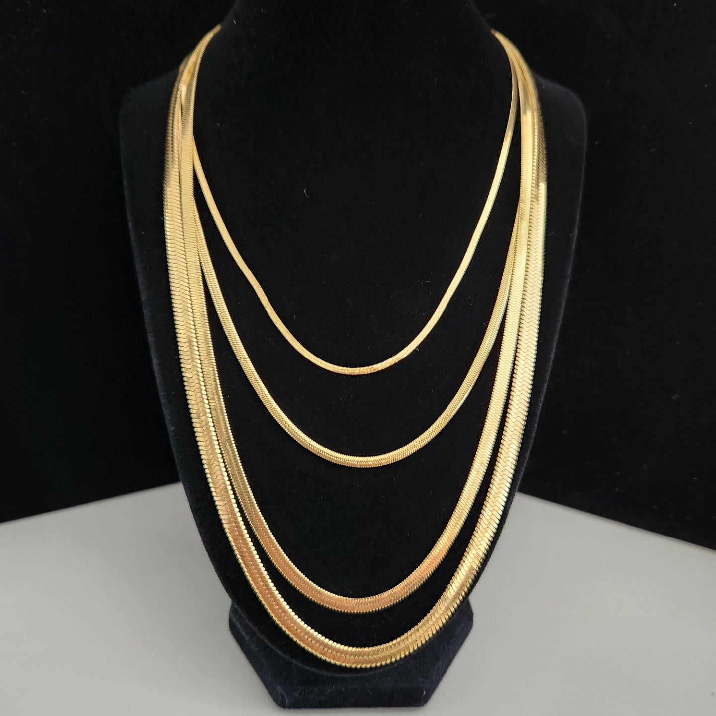 Gold plated herringbone necklaces. Available in different lengths and widths.