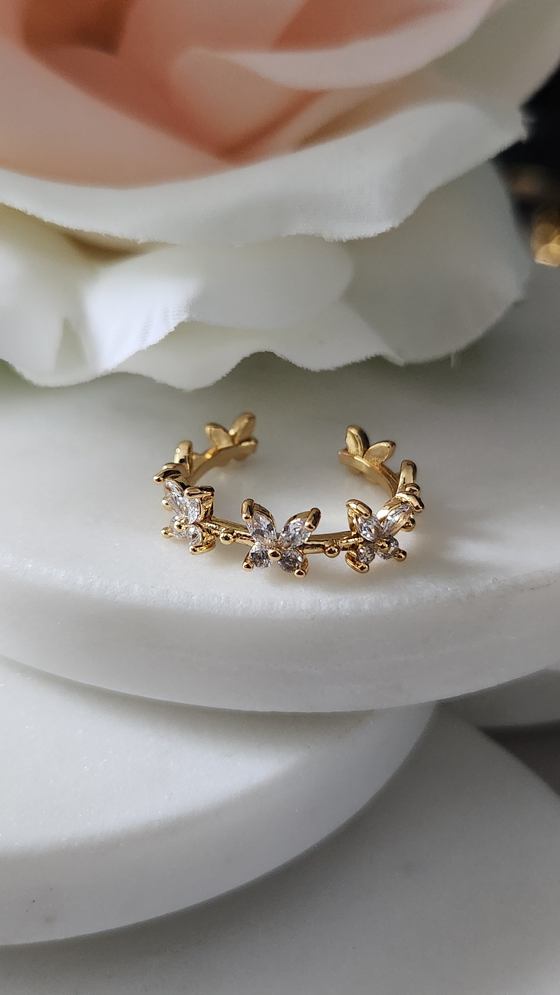 Experience the beauty and elegance of butterflies with our Kali butterfly necklace. Made with high-quality gold plating, this necklace features four intricately detailed butterflies in varying sizes. Pair it with our matching open back adjustable ring for a complete and stunning look. Perfect for any occasion.
