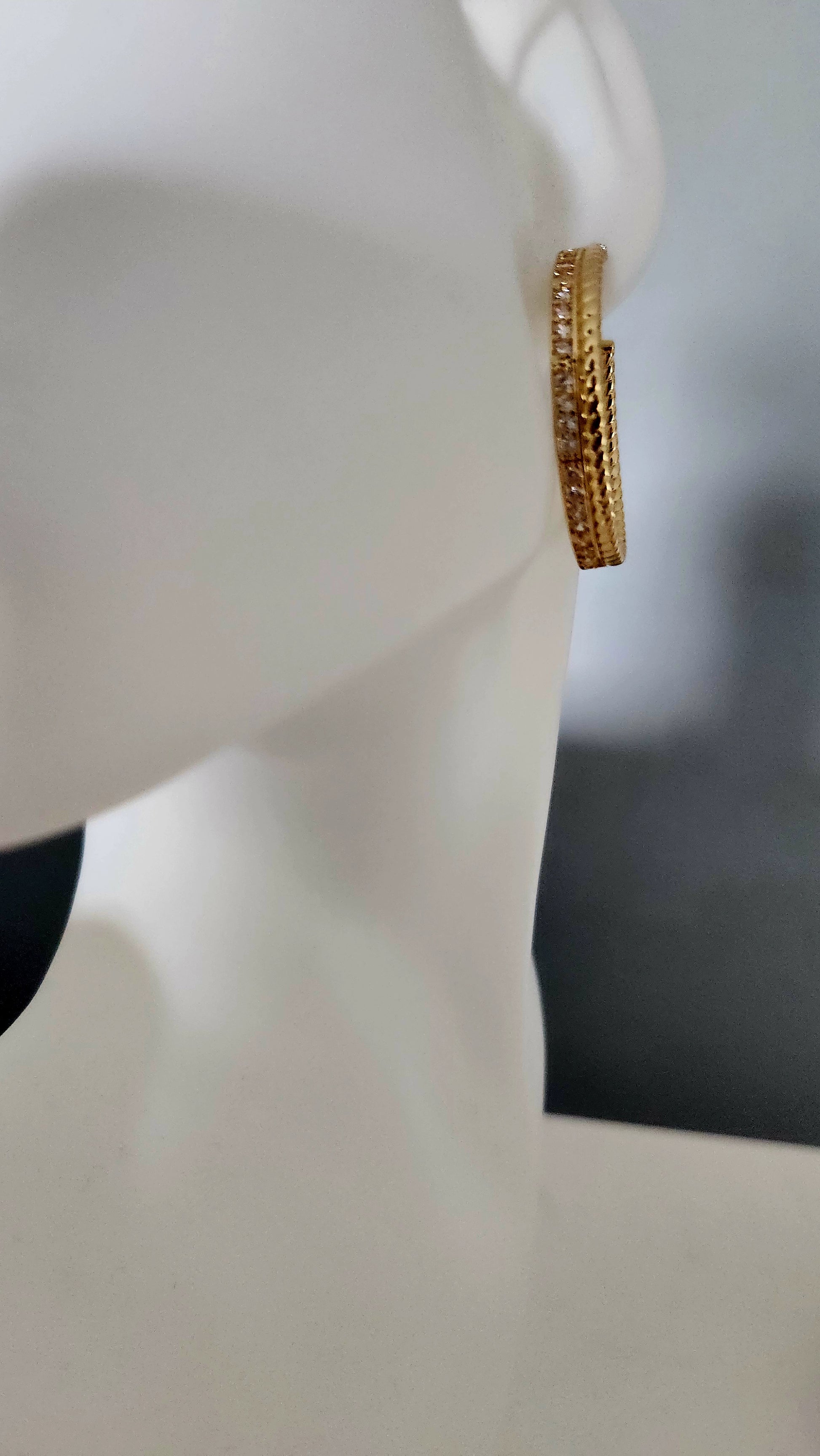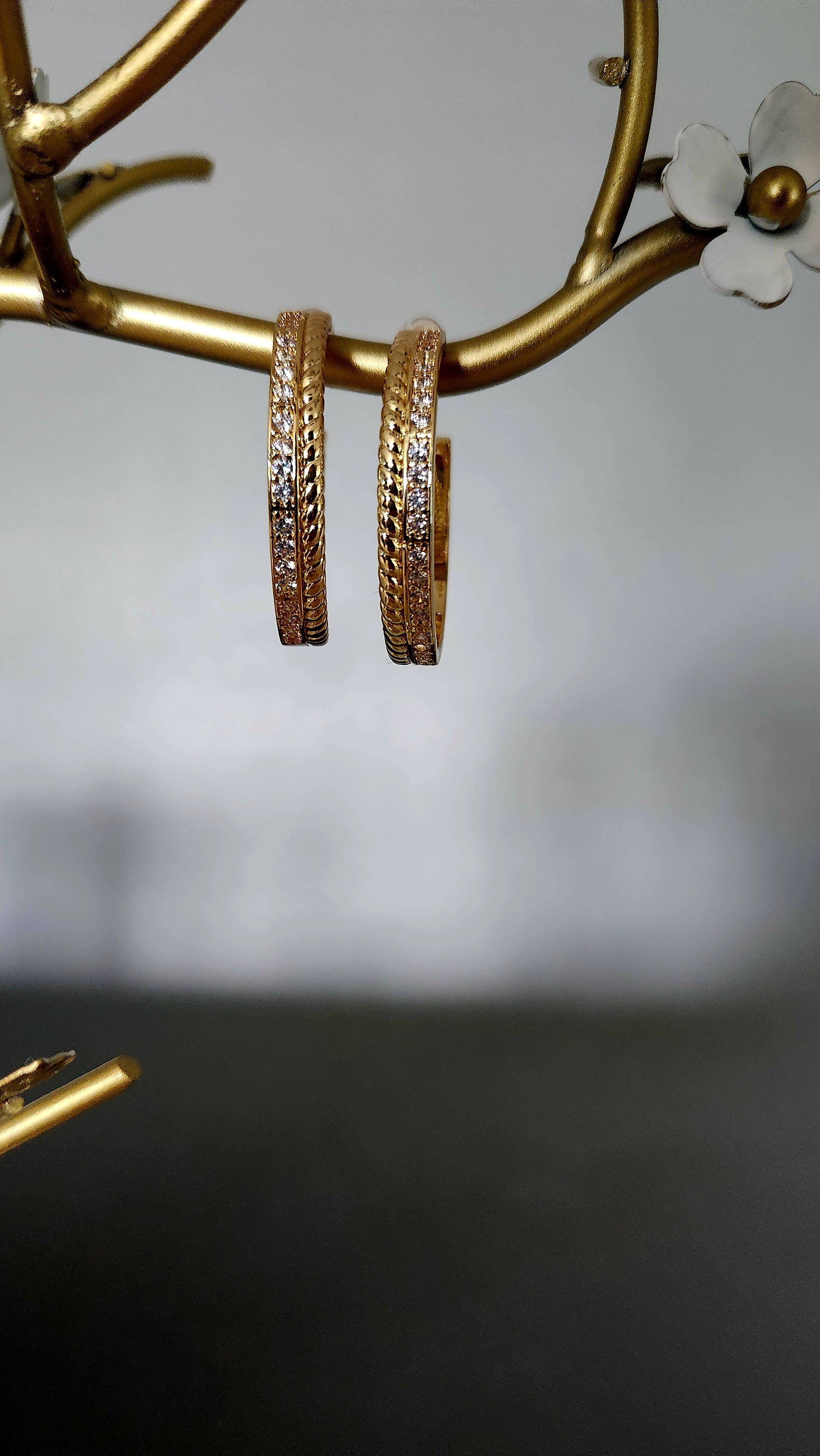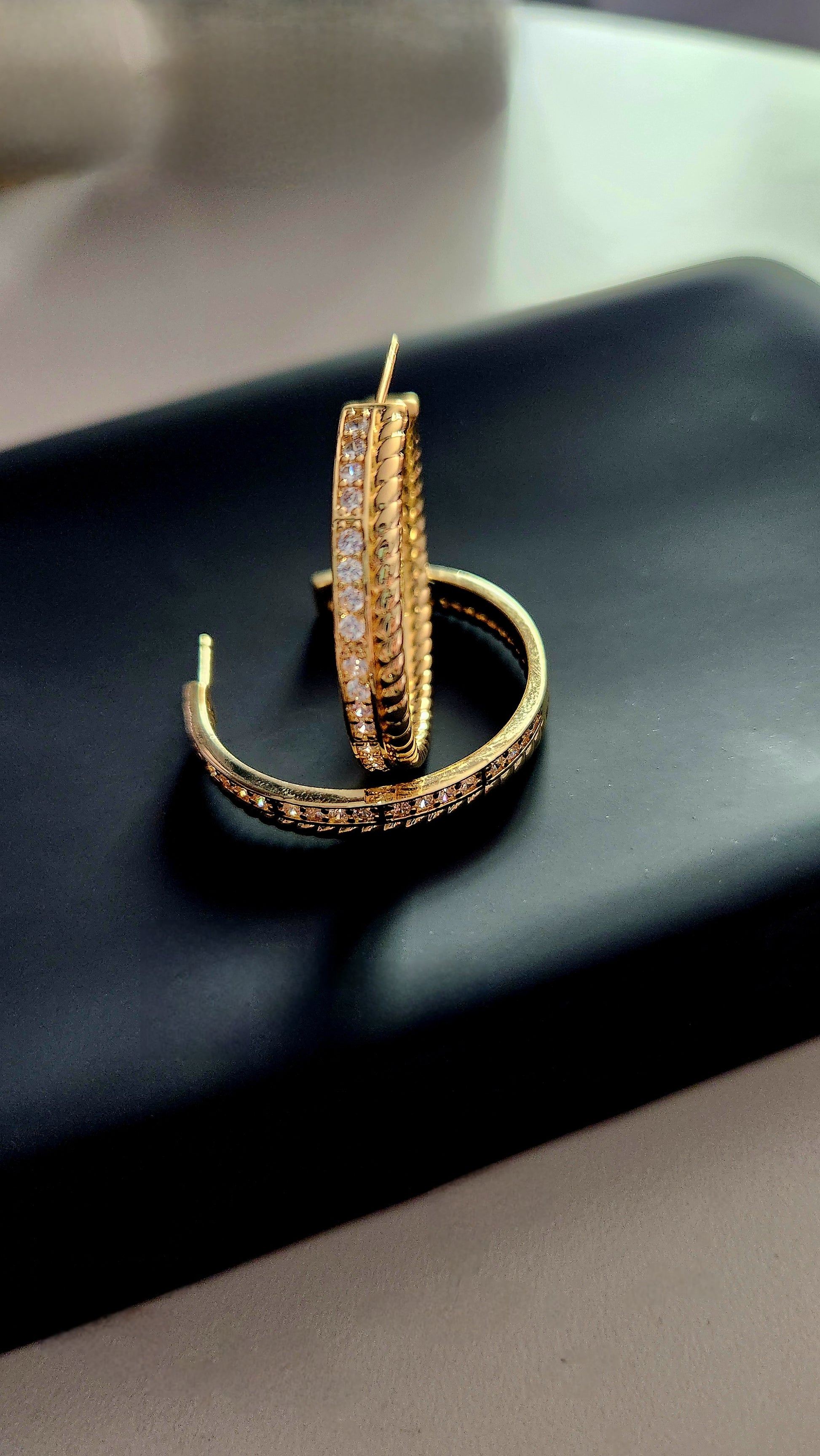 Effortlessly elevate your style with our Jeni Hoops. These stunning 18k gold plated hoops are accented with sparkling zircon gems, adding a touch of elegance to any outfit. Perfect for any occasion, you'll love the timeless glamour these hoops bring.