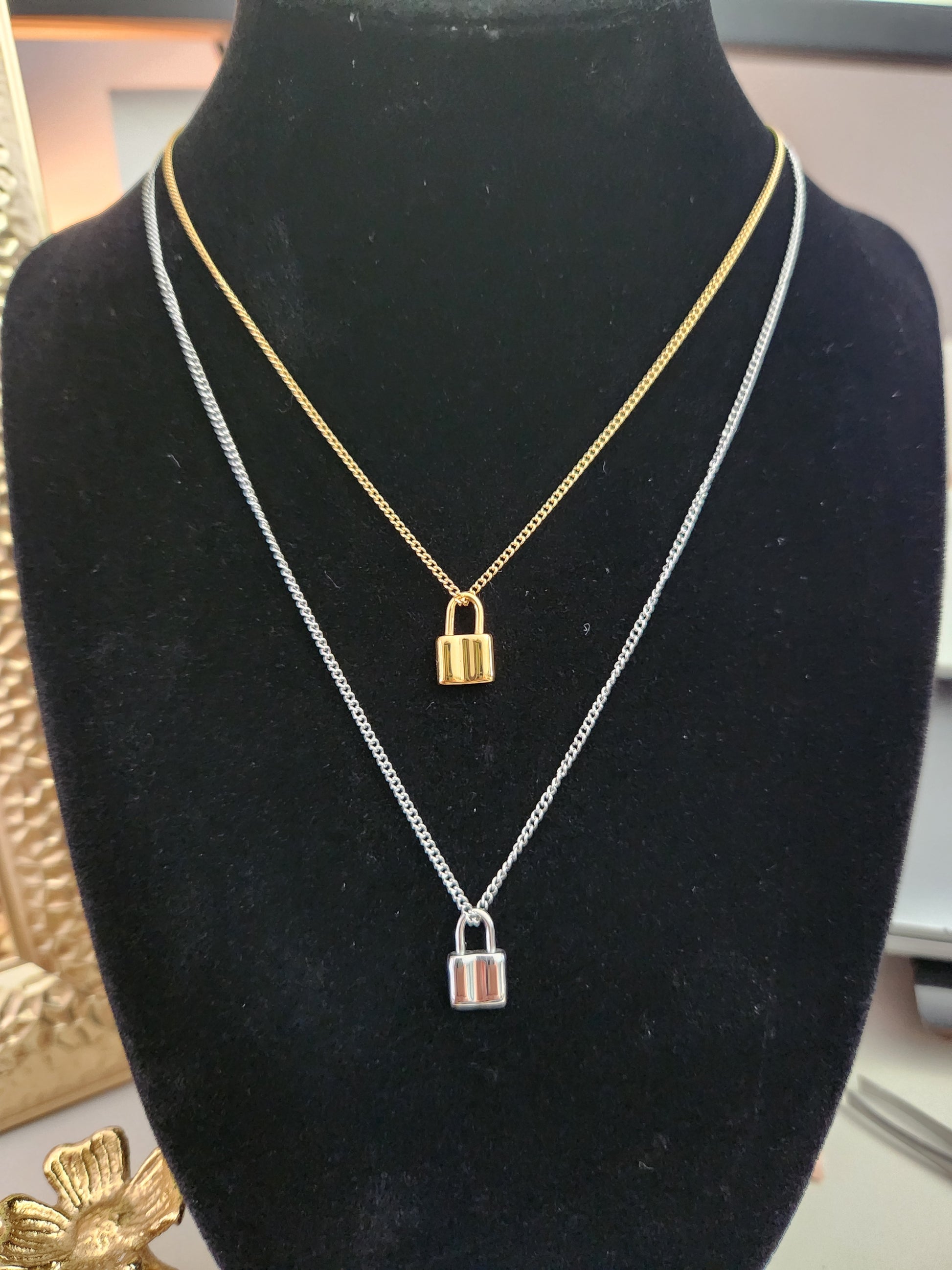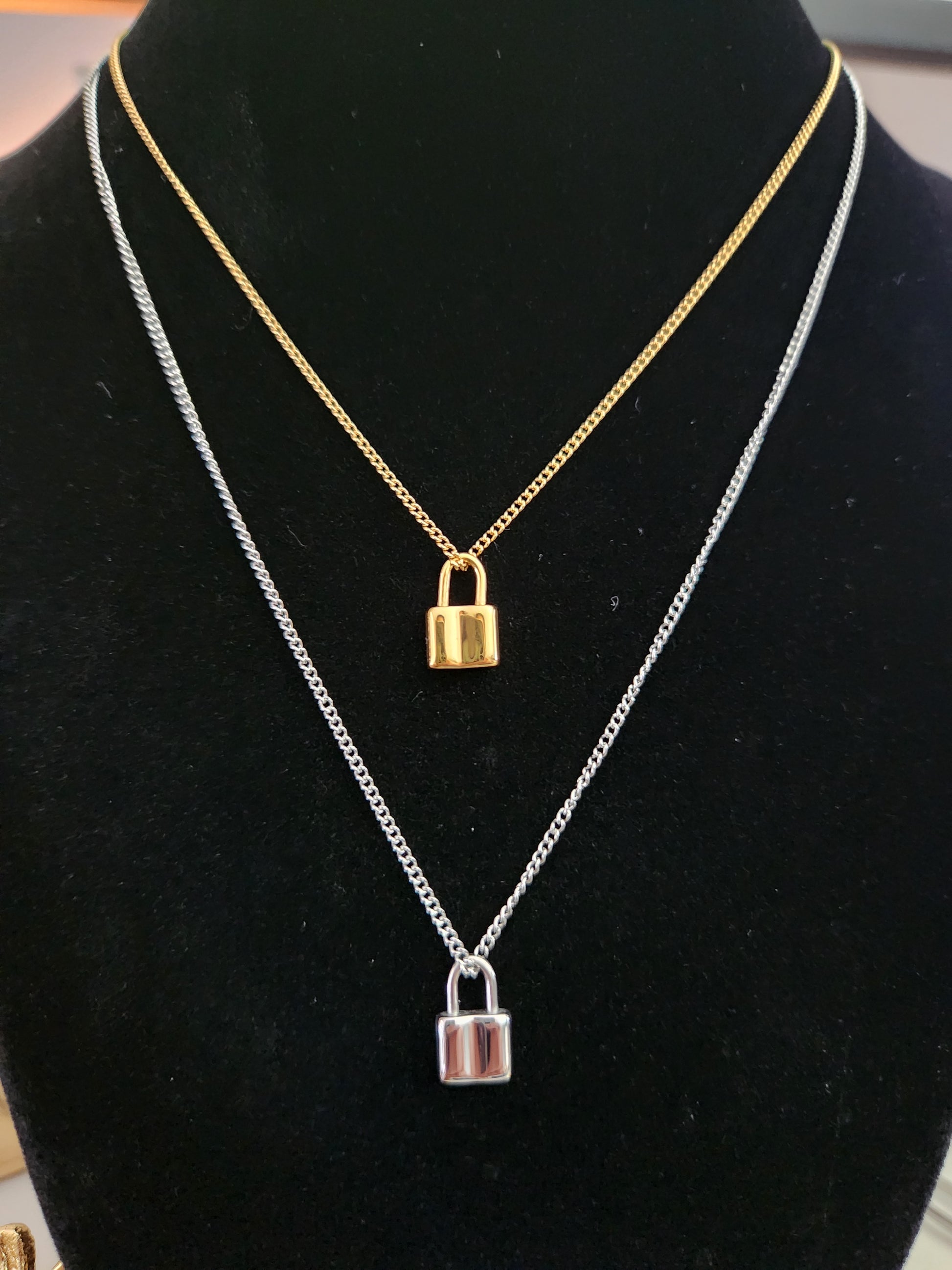Lock up your love with our Love Lock Necklace! This quirky and playful accessory features a small lock pendant on a dainty chain, available in both silver and gold plating. Show off your unique style and add a touch of whimsy to any outfit with this statement piece. (Note: no keys required!)