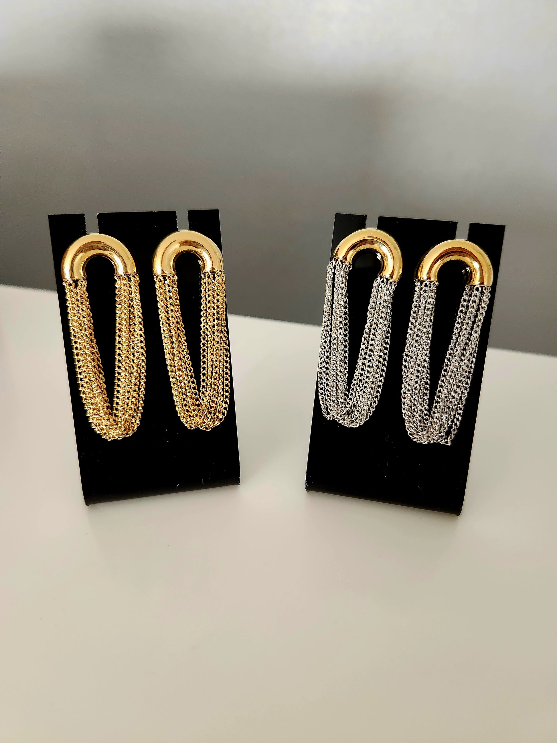 Add a touch of glimmer with our Metallic Fringe Earrings, available in silver and gold or all gold. Perfect for adding a playful and quirky twist to any outfit. Shine on!