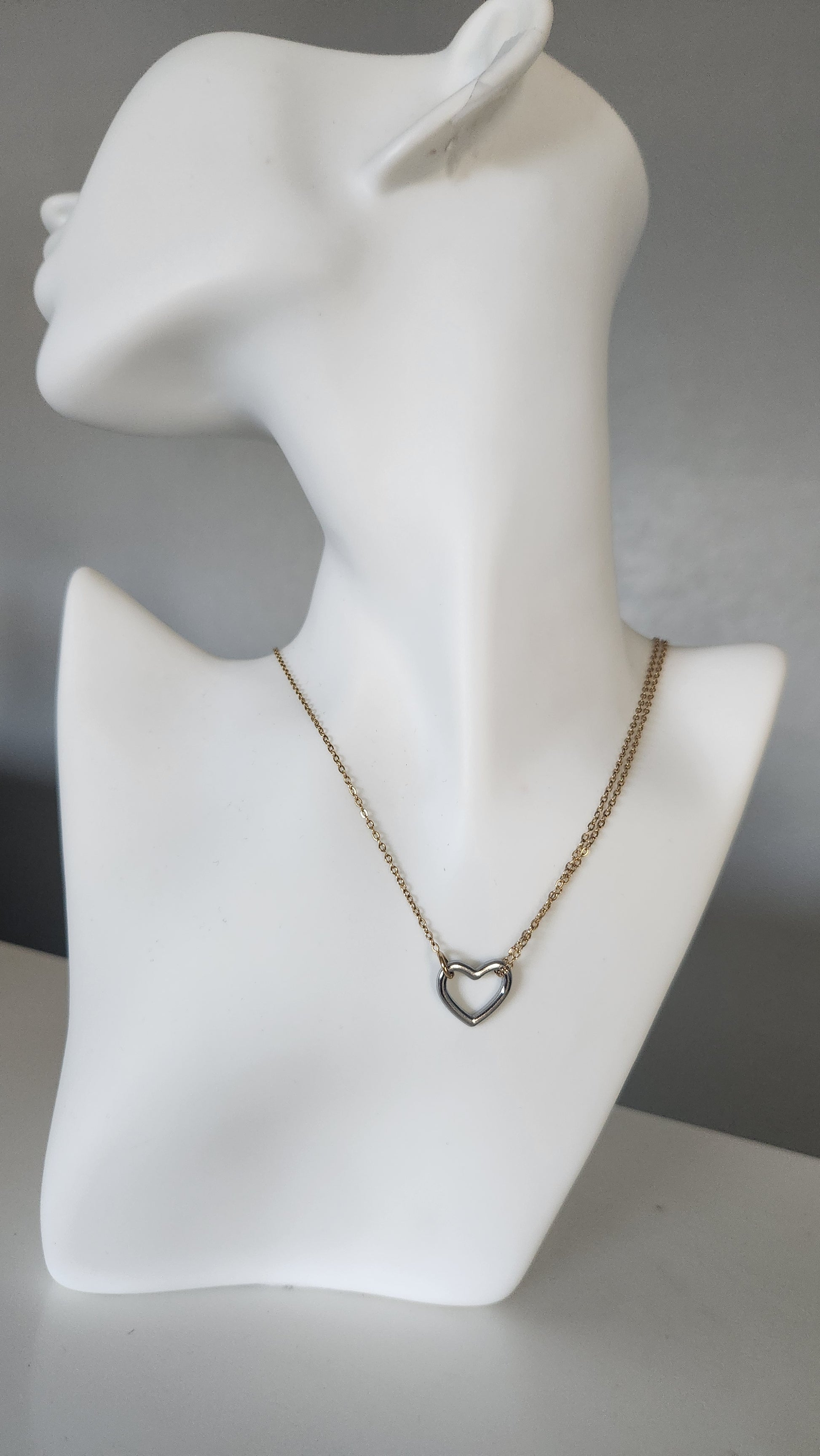 Show your love with our Mila Heart Necklace. Made from gold plated titanium steel, this delicate necklace features a floating heart pendant in a mesmerizing steel color. Express your affection with this timeless piece that will make a perfect addition to any outfit.