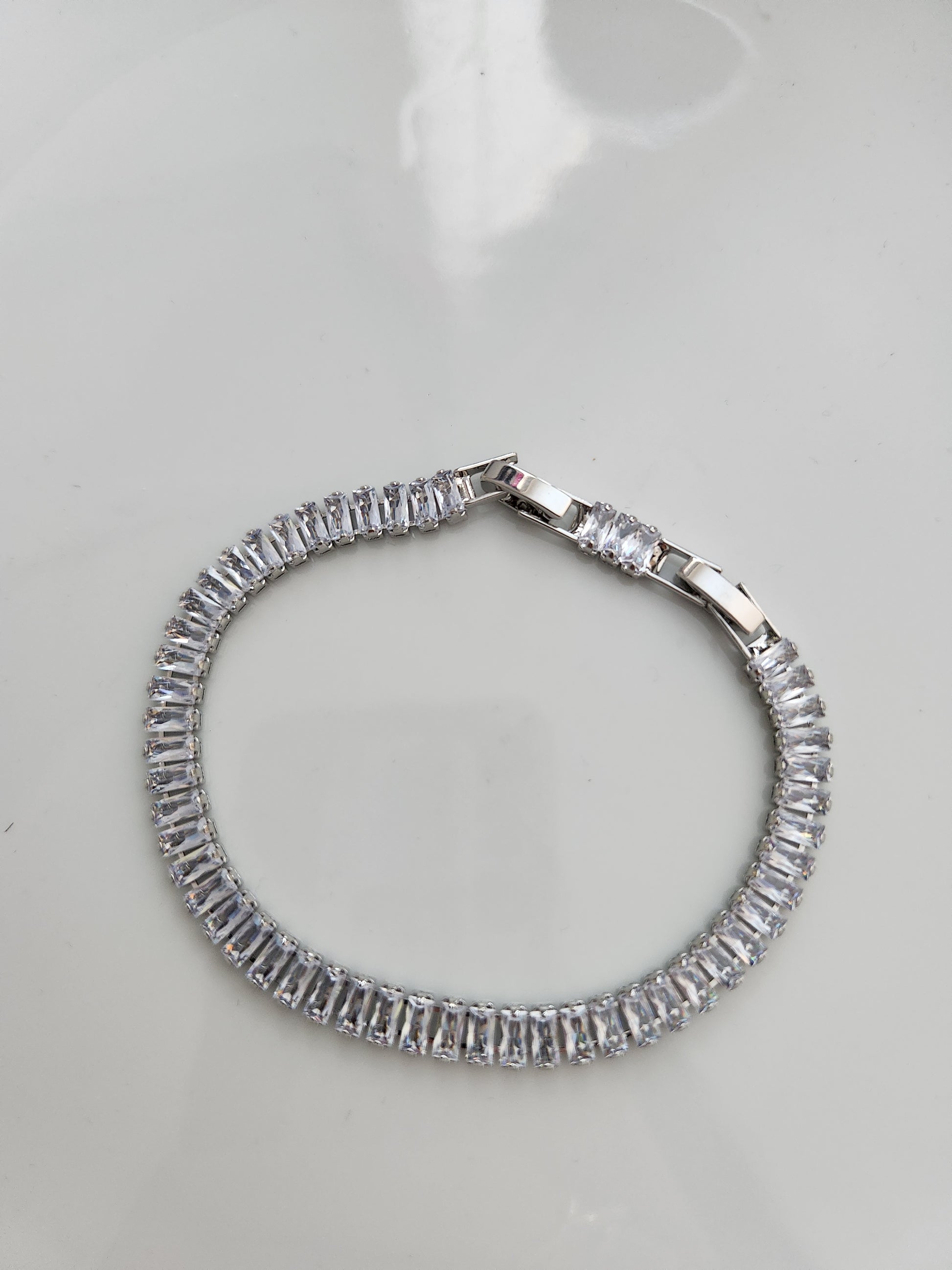 Silver plated bracelet with rectangular cubic zirconia inlay