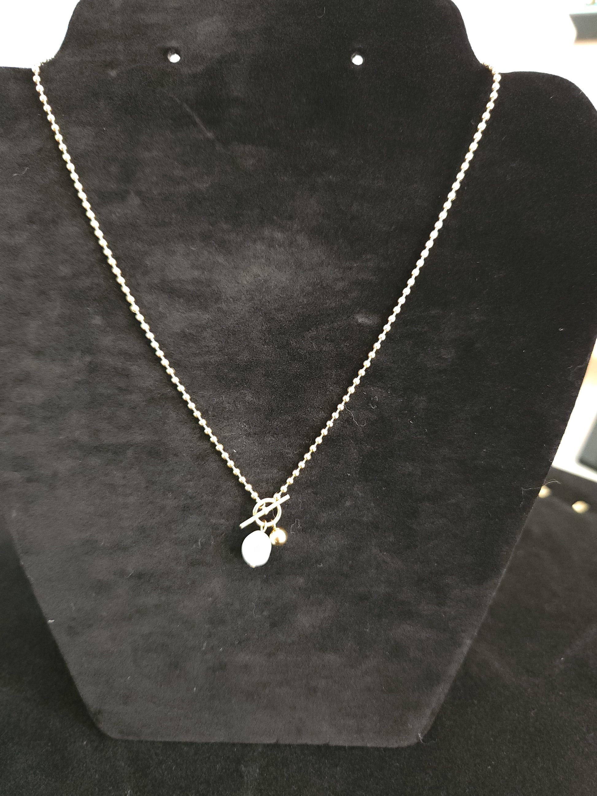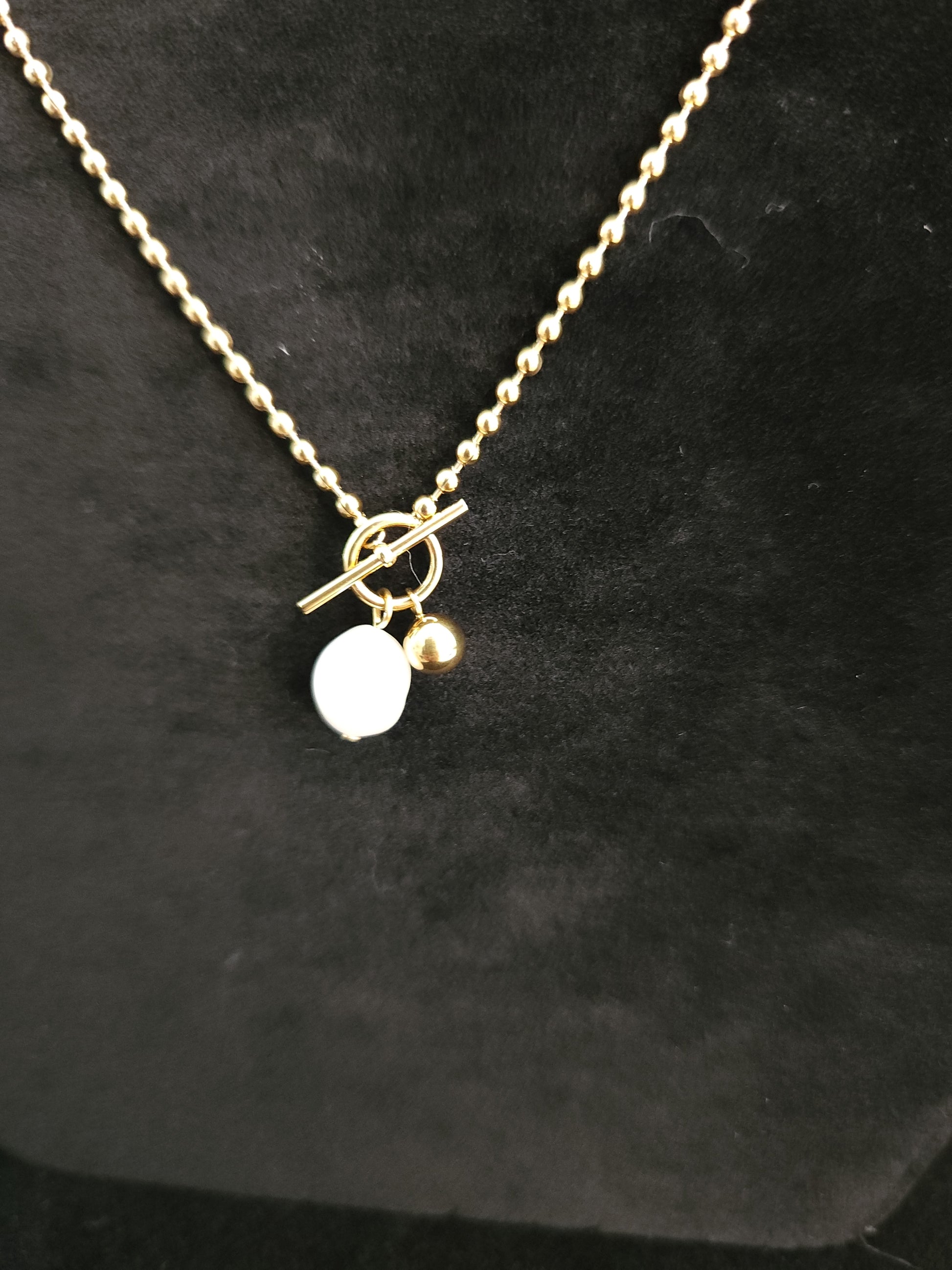Gold plated beaded pearl toggle pendant necklace. Length is 17 inches.