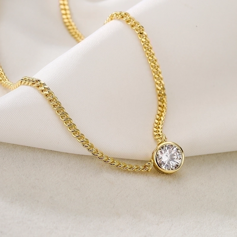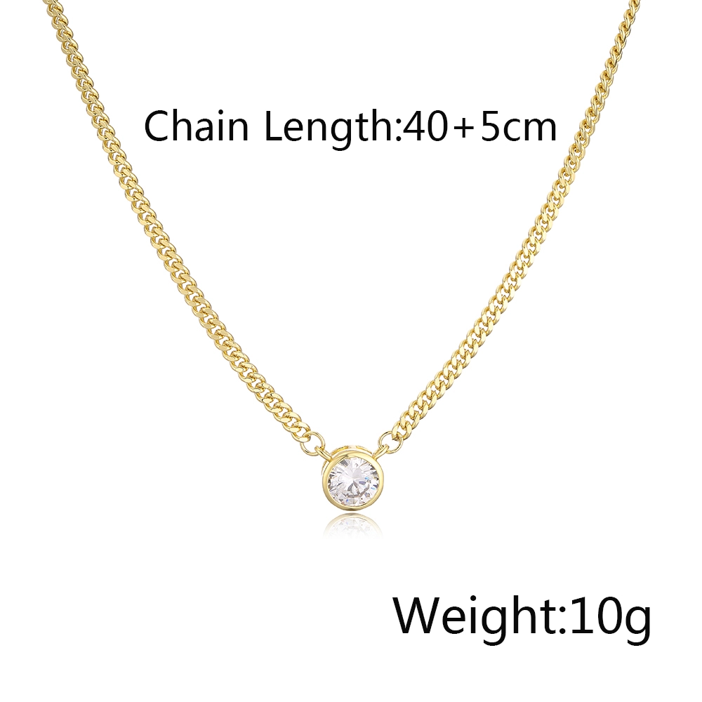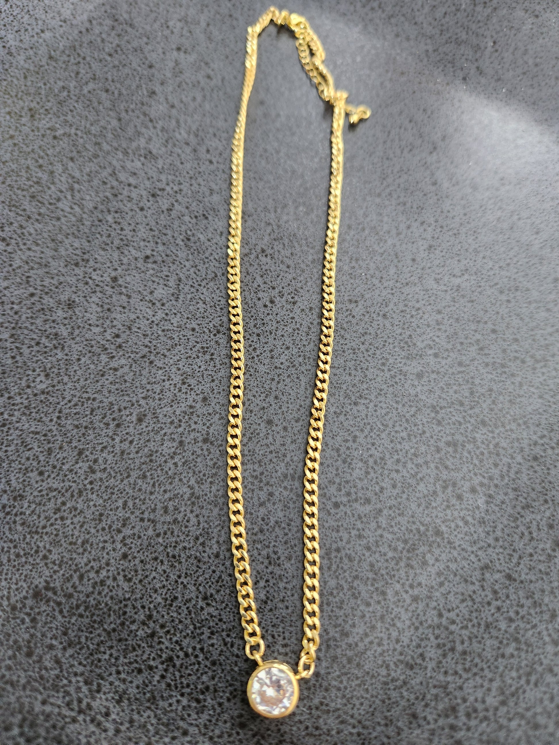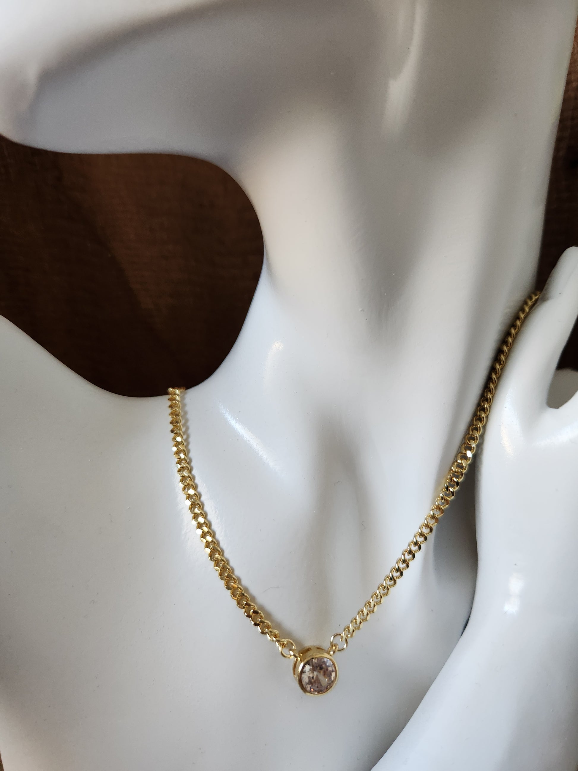 18K gold plated cuban link with round cubic zirconia pendant length 40 + 5 cm